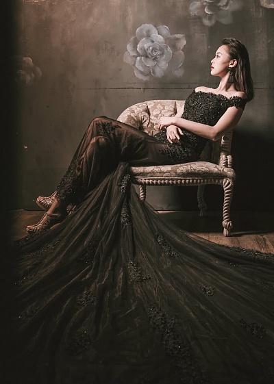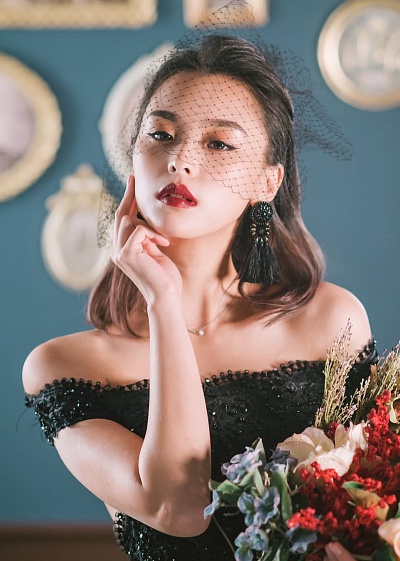 Hair: dark brown
